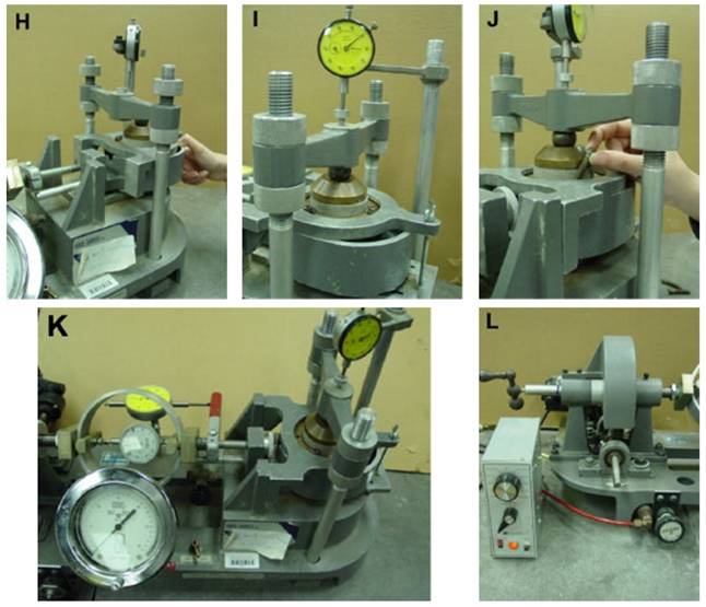 (8) Set the vertical load (or pressure) to a predetermined value, and then closebleeder valve and apply the load to the soil specimen by raising the toggle switch.