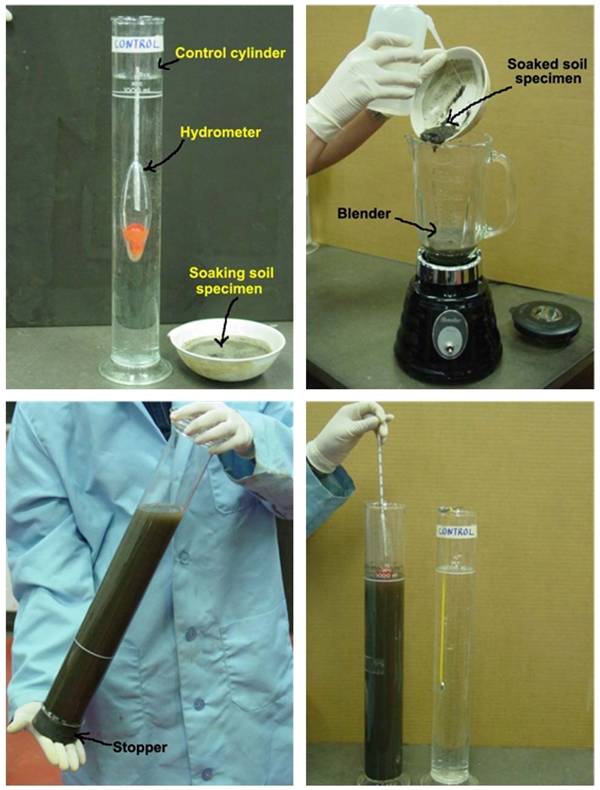 Equipment: Balance, Set of sieves, Cleaning brush, Sieve shaker, Mixer (blender), 152H Hydrometer, Sedimentation cylinder, Control cylinder, Thermometer, Beaker, Timing device.