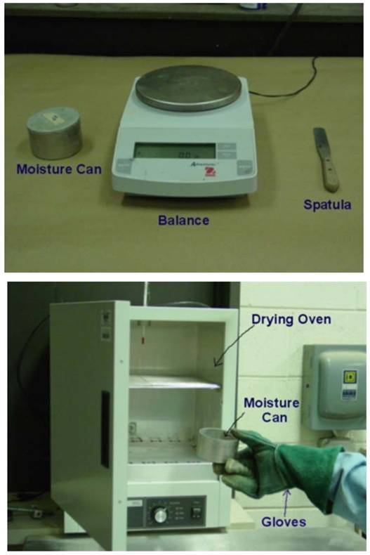 Equipment: Drying oven, Balance, Moisture can, Gloves, Spatula.