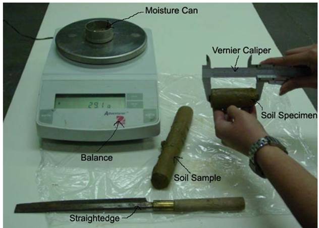 Equipment: Straightedge, Balance, Moisture can, Drying oven, Vernier caliper